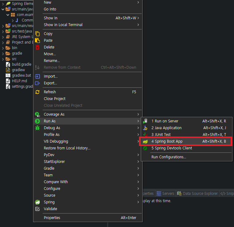 3-1. 프로젝트 > 우클릭 > Run AS > Spring Boot App 클릭